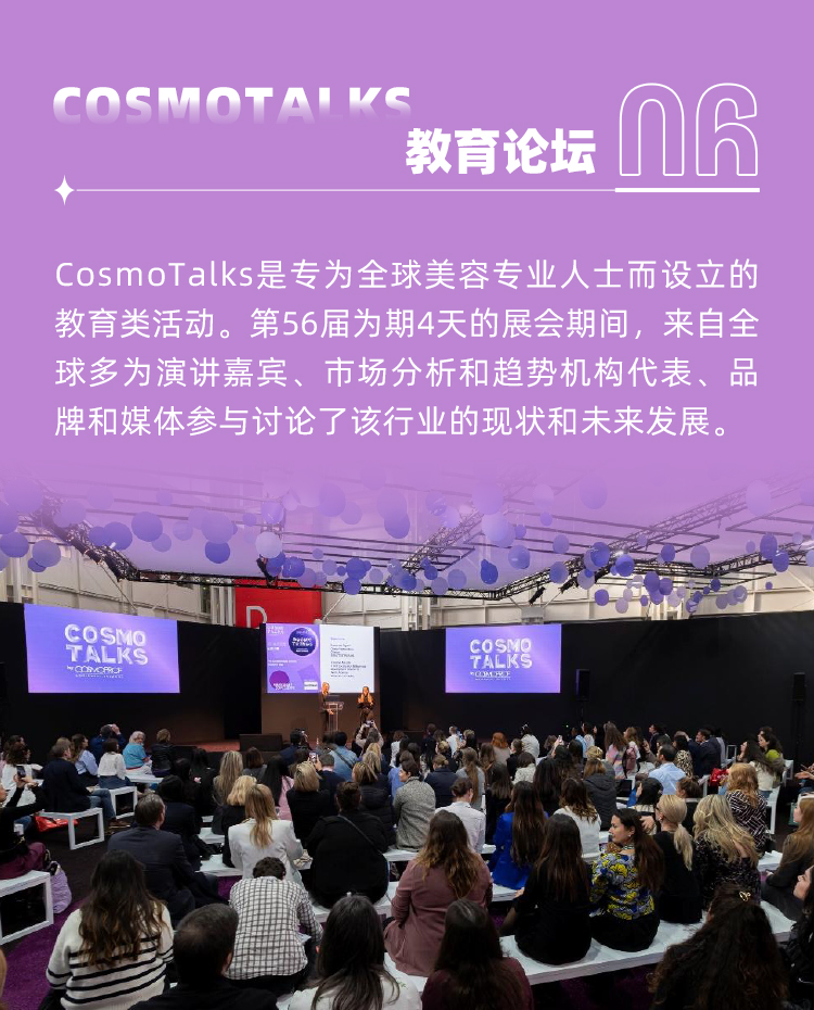 专业美发、美甲、美容院线及水疗展区(Cosmo Hair、Nail & Beauty Salon):聚焦国际专业美发、美甲与美容院线产品,囊括护发、护甲产品,专业工具设备及美容水疗解决方案。无论您是美发沙龙、水疗中心、美甲沙龙的专业人士还是行业批发商,都能在此探索创新技术、潮流趋势和全方位的院线业务升级方案。