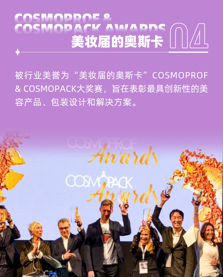 COSMOPROF卡思曼伯意大利博洛尼亚国际美容展分为三大展区,并将于3月26日(周四)同期开放。其中,Cosmopack与Cosmo Perfumery & Cosmetics展区将于3月28日(周六)闭幕,Cosmo Hair、Nail & Beauty Salon展区则将持续至3月29日(周日)闭幕。