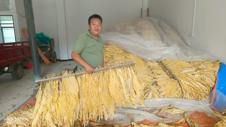 “有了‘金叶贷’,买化肥、雇人工的钱有了着落;党员技术员每周都来地里,从育苗到烘烤手把手教,比自己家人还上心。”今年开春,张开鹏顺利拿到10万元“金叶贷”,在技术人员的指导下,他严格按照标准化生产技术方案开展种植:采用漂浮育苗技术培育壮苗,移栽时精准控制株距行距,大田管理期间科学施肥、增高培土、及时防治病虫害,烘烤阶段更是在党员技术员的现场指导下,根据烟叶成熟度及含水量判定烘烤特性,科学制定烘烤曲线,调整温湿度。“以前凭经验烤,经常出现烤焦、烤青的情况,今年按技术方案来,每炉烟叶的黄烟率都能达到95%以上,质量比往年好太多了!”张开鹏指着烤房里金灿灿的烟叶,难掩激动。
