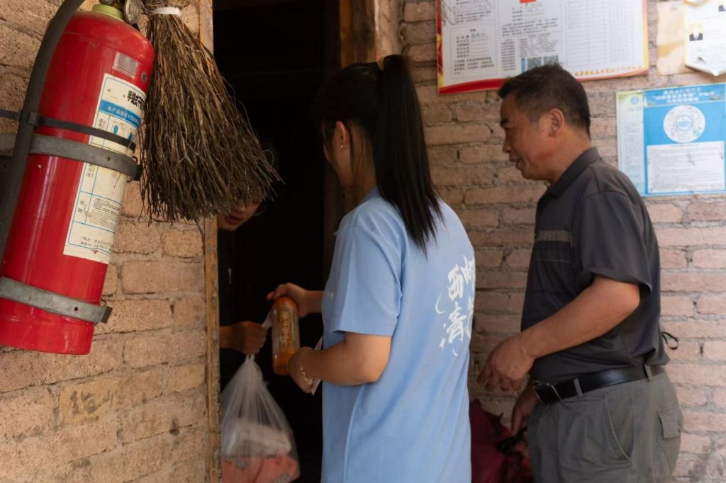 (图为“陕澳同心·黔行筑梦”实践队成员携带生活物资走访村民家)