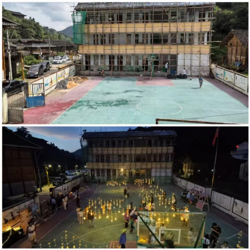 (图为乡村小学环境美化前后对比图)
