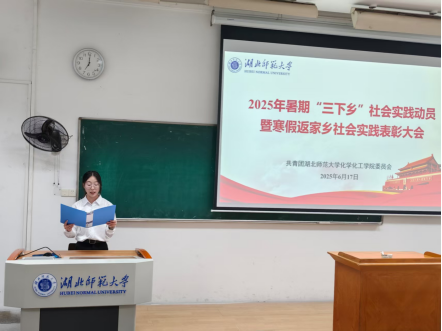 深入社会大课堂,将小我融入大我。今年暑假,湖北师范大学化学化工学院以“青春为中国式现代化挺膺担当”为主题,组织12支实践队、近200名师生奔赴城乡社区、中小学、田间地头,开展了为期1个月的“三下乡”社会实践活动。化院学子用脚步丈量大地,以“自找苦吃”的勇气,将课堂所学化为服务社会的实践力量,用实际行动诠释新时代青年的责任与担当。