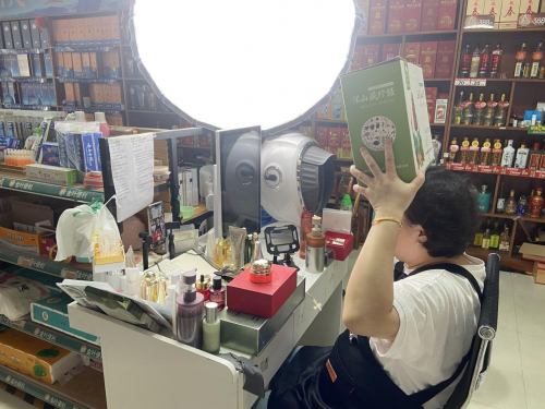 上午的南召县街道,路人熙熙攘攘。“金生便利”的卷帘门早已经拉起,老板娘薛金生正在手机前调试灯光。镜头前,各种南召特产并排摆放,精美的包装盒在农特产后边吸引着眼球,这是她今天直播的商品,消费者可以自由搭配各种特产并选择自己喜欢的包装。“老铁们自己搭!今天下单送皇路店花生试吃装!”的小标语横在背景墙上……这样的上午,她已经坚持了七百多天。