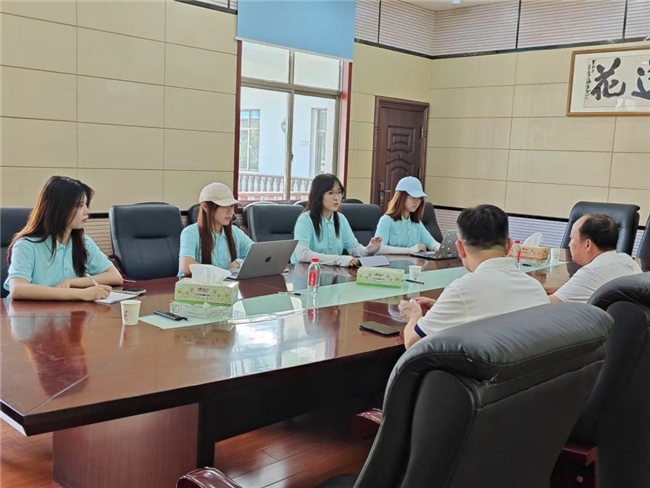 (图为爱+工商蓝莲火传薪实践队在莲花镇政府与镇党委负责人进行座谈。邹佳珂 供图)