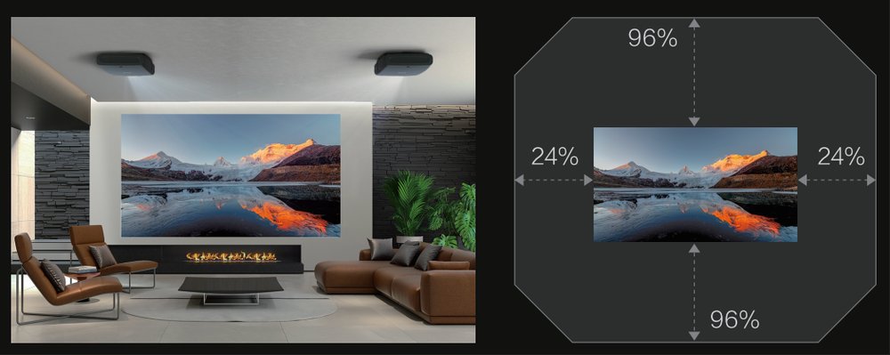 CH-LS9000系列不仅带来了审片级的观影体验,更通过人性化的设计让专业体验轻松融入日常。巧妙的前置出风散热设计让安装角度不再受限,无论是常规吊装,还是置于书架、酒柜、收藏品展示架,都能巧妙融入家居环境。结合电动镜头、2.1倍超广变焦和大范围镜头位移的黄金组合,只需指尖轻触即可实现无损调校。即使投影机被安装到角落,依然能轻松获得方正大画面,真正实现无拘无束的观影自由。