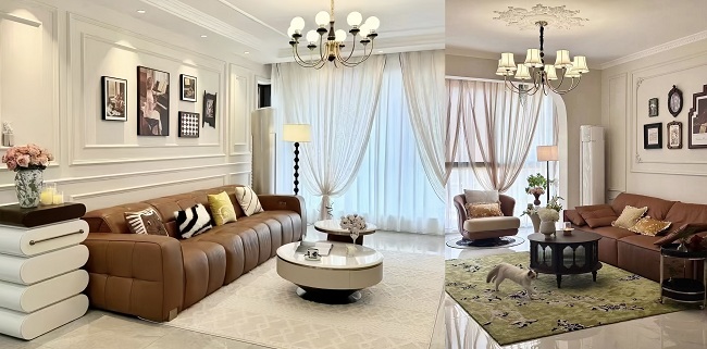 加以金属灯具、复古油画、古董摆件等精美饰品点缀其间,为空间注入现代摩登的精致气息,堆叠出厚重的故事感,时尚而不失韵味。