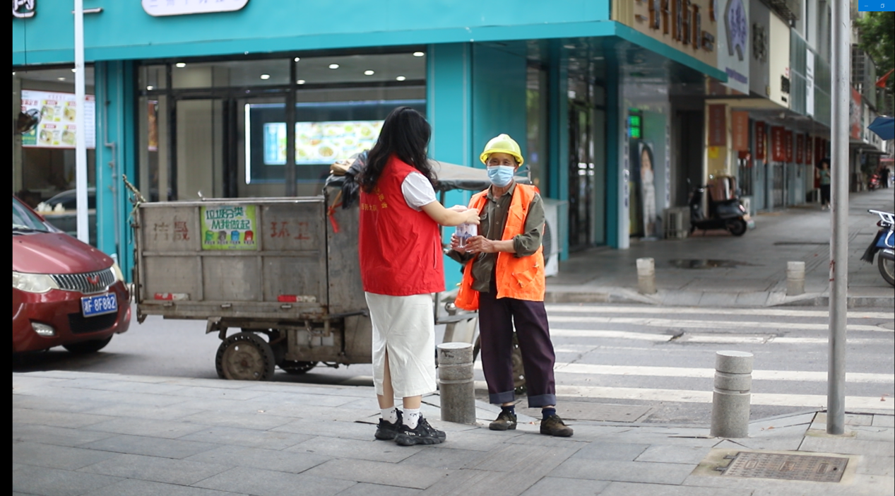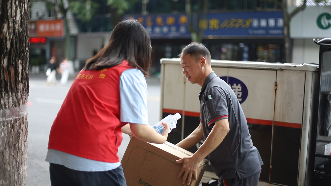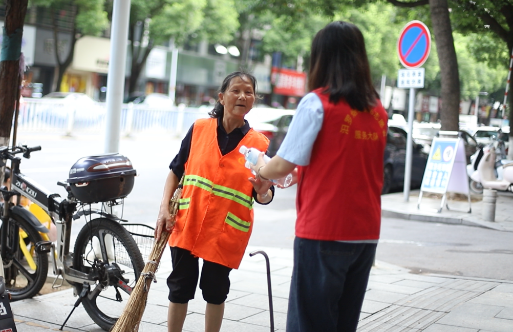 这是刘欣和志愿者伙伴今天送出的第64瓶水和第16盒藿香正气液。她们穿梭于汨罗街头,为环卫工人、外卖骑手、快递配送员等一批高温下的劳动者送去清凉与问候。而这,仅仅是“送清凉”系列行动中的一个缩影。
