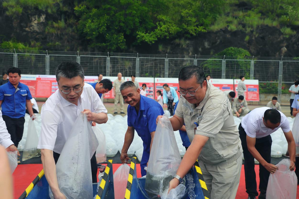 活动中,在四川省和云南省各级农业部门的共同见证下,该公司组织专业人员和职工,将岩原鲤、长薄鳅、圆口铜鱼等7种珍稀特有鱼类,共计49.5万尾鱼苗有序放流至库区,很好的补充了金沙江鱼类资源。