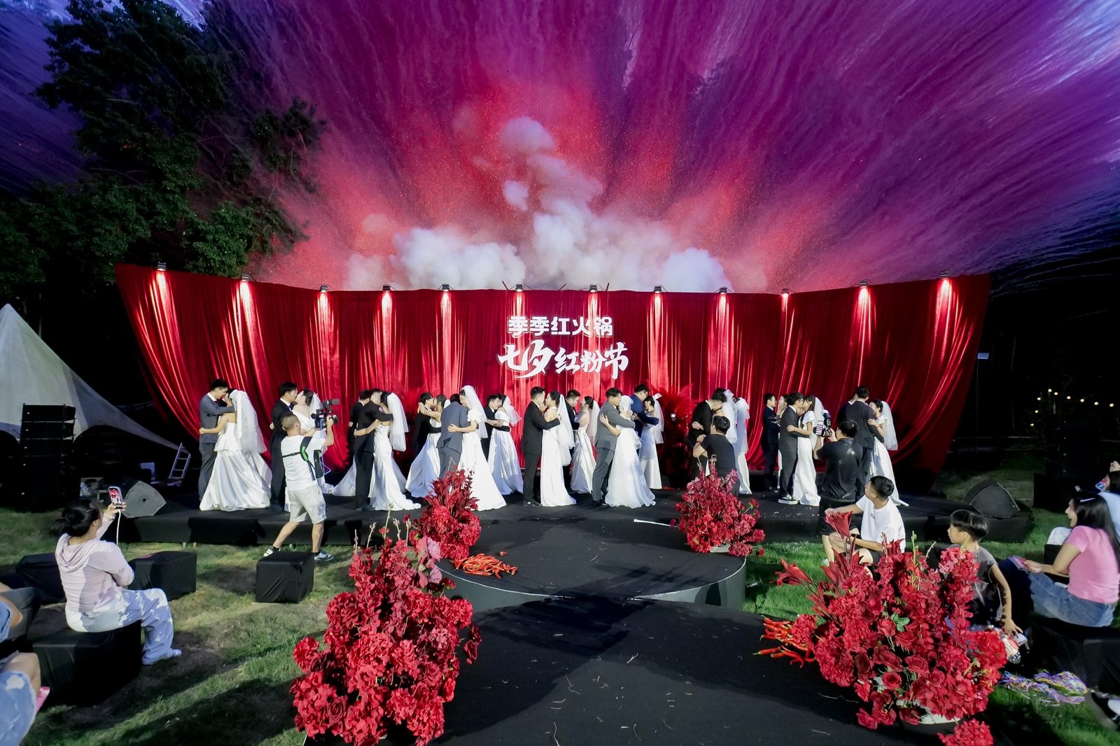七夕佳节再度来临,一轮以“爱”之名的品牌营销热潮也随之涌动。不少品牌仍停留在推出节日限定、短期促销等常规打法,而江西餐饮品牌季季红火锅却用持续6年的“七夕红粉节”,展现出截然不同的品牌理念:这不是一场应景的营销,而是一次真心的奔赴。8月24日,季季红为19对“红粉情侣”举办了一场独具匠心的集体婚礼。在营销话语快速更迭的今天,季季红坚持6年时间延续同一IP,背后并非出于营销策略的考量,而是源于品牌与年轻人建立真实情感连接的诚意与长期主义的坚持。
