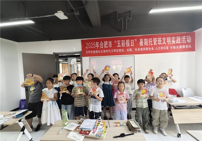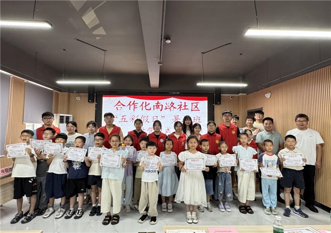 8月25日,合作化南路社区暖心港湾为解决新业态群体后顾之忧的“五彩假日”暑托班在欢声笑语中迎来了它的结业式,孩子们用自编自演的节目展示了暑期的成长收获。快递员李先生还为社区送来"用心育娃,贴心为民"等两面锦旗,表达对暑托班服务的由衷感谢。