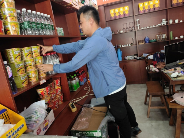 客户经理谢旭指导经营户商品摆放“小妙招”