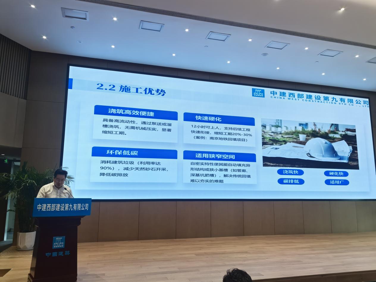活动上,九公司及研究院的产品推介官通过现场演示、案例解析等方式,对石膏复合材料建筑楼板隔声保温系统、中建超韧地坪系统、中建防水系统、超高性能混凝土(UHPC)及流态固化土等产品进行了详细介绍,对产品性能参数、技术创新亮点和实际应用场景进行了全方位、多角度的专业解读,引发了与会嘉宾的浓厚兴趣与热烈讨论。