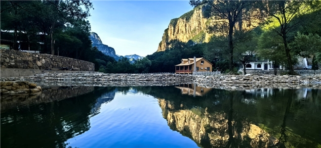 澳涞山庄坐落于国家5A级景区太行山大峡谷红豆峡核心区域,森林覆盖率超90%,每立方厘米空气中负氧离子含量高达30,000个,堪称“天然氧吧”,为康养提供了优质的生态基础。这里夏季平均气温22℃,气候宜人,是避暑康养的绝佳选择。山庄前身为纪念中国山水画鼻祖荆浩的荆浩画院,千年文脉在此延续。游客可参与“行走的山水画”沉浸式体验,跟随画家挥毫泼墨,临摹太行美景,感受传统文化的魅力,实现身心的双重滋养。