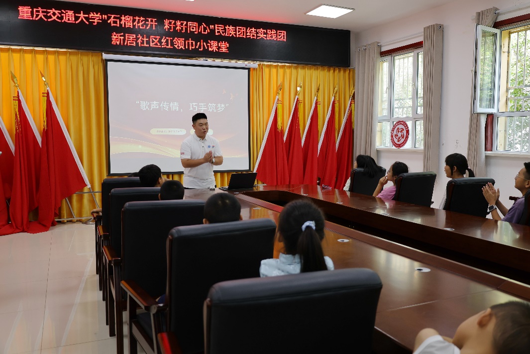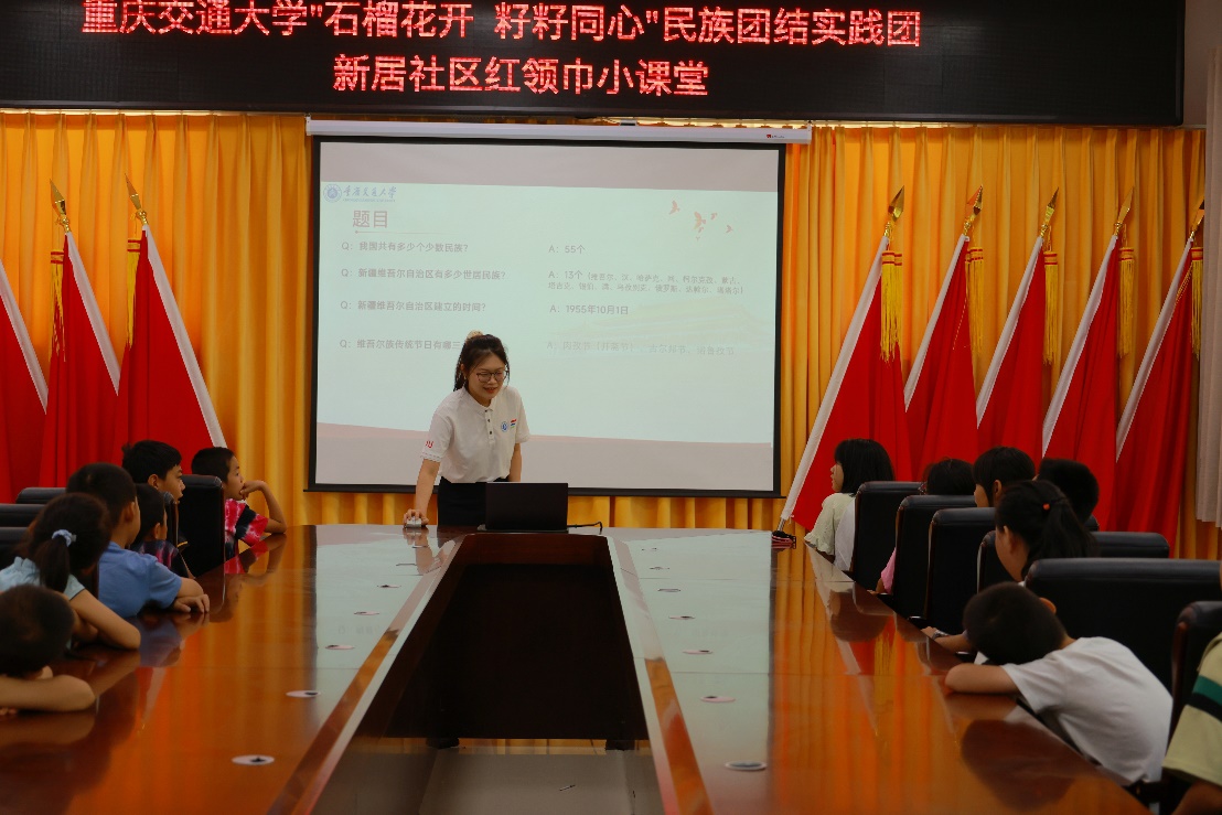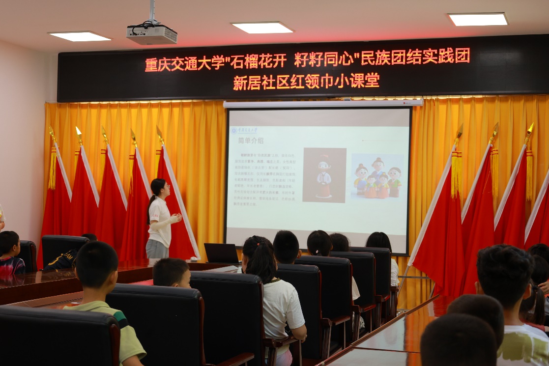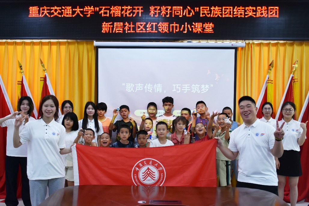 8月5日,入选“‘石榴籽祖国行’专项社会实践团队”的重庆交通大学“石榴花开·籽籽同心”民族团结实践团,走进新居社区,为该社区的30名来自不同民族的中小学生精心策划并开展了一系列富有成效且精彩纷呈的民族团结实践活动。