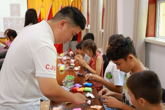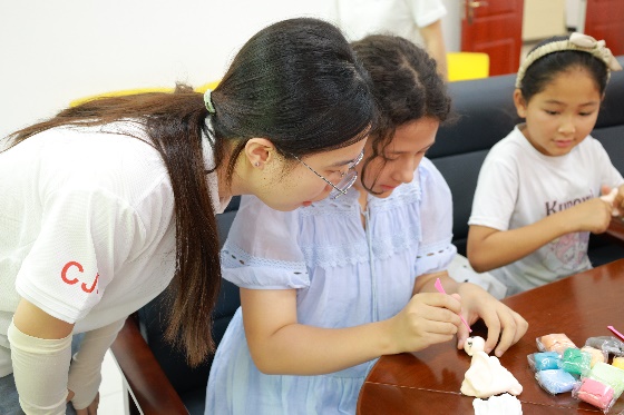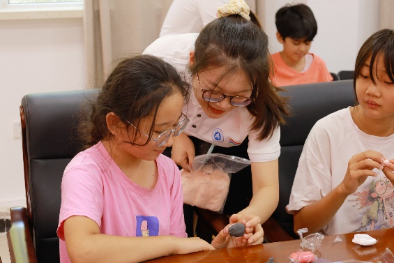 “我要做一个漂亮的维吾尔族花帽!”11岁的哈萨克族小朋友选择了维吾尔族传统“朵帕”作为创作主题。在实践团队员的耐心指导下,她用红色和白色的粘土精心雕琢着花帽上的传统图案。