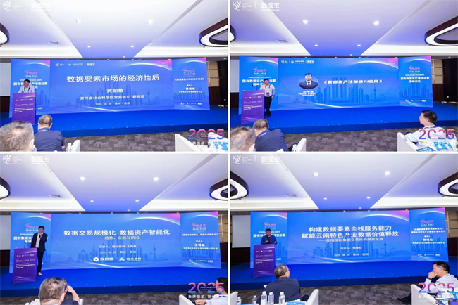 在主题演讲环节,贵州省社会科学院党委书记黄朝椿、数据宝董事、研究院院长彭海林、深圳微众信用科技股份有限公司总裁王锦胤、昆明国际数据交易所数据研究院院长杨晓松分别发表演讲。四位嘉宾的演讲内容翔实、视角多元,为推动数据要素市场化发展提供了重要理论与实践经验。