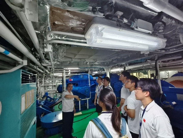 2025 年 7 月 23 日 厦门・“向阳红 3 号” 科考船驾驶室 队员参观驾驶室内精密仪器,直观感受我国海洋科研硬实力,理解船舶作为 “海洋强国利器” 的国家使命。 王治强供图