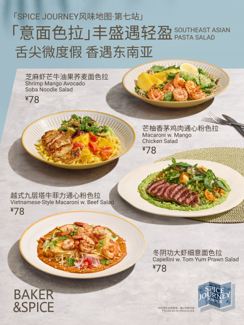 2024年,BAKER & SPICE推出“风味地图”IP,开启了一场在中国餐饮界少见的跨地域味觉探索,无论是日式照烧的酱香与浓醇、毛辣果红酸汤的酸爽与清新,还是东南亚香料意面的热烈与丰富,每站都是一场跨越地域的味蕾之旅。在口味趋同的餐饮市场中,“风味地图”延续品牌的先锋探索精神,持续拓宽风味边界,也让品牌在同质化竞争中形成差异化优势。