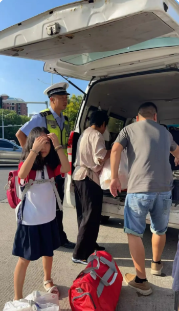 2025秋季开学前,天门交警早谋划、细部署,拉网式走访中小学校,重点开展校园周边交通秩序整治、安全隐患排查、校车安全培训及“体检”工作。8月28日,正直天门市楚华高级中学开学,天门交警不顾炎炎烈日与高温,在学校门前路段及周边,全力开展交通疏导,为确保返校高峰期道路通畅有序,民警多次往返校门口与寝室,帮助学生搬运行李,劝导家长不必下车,尽快驾车驶离。
