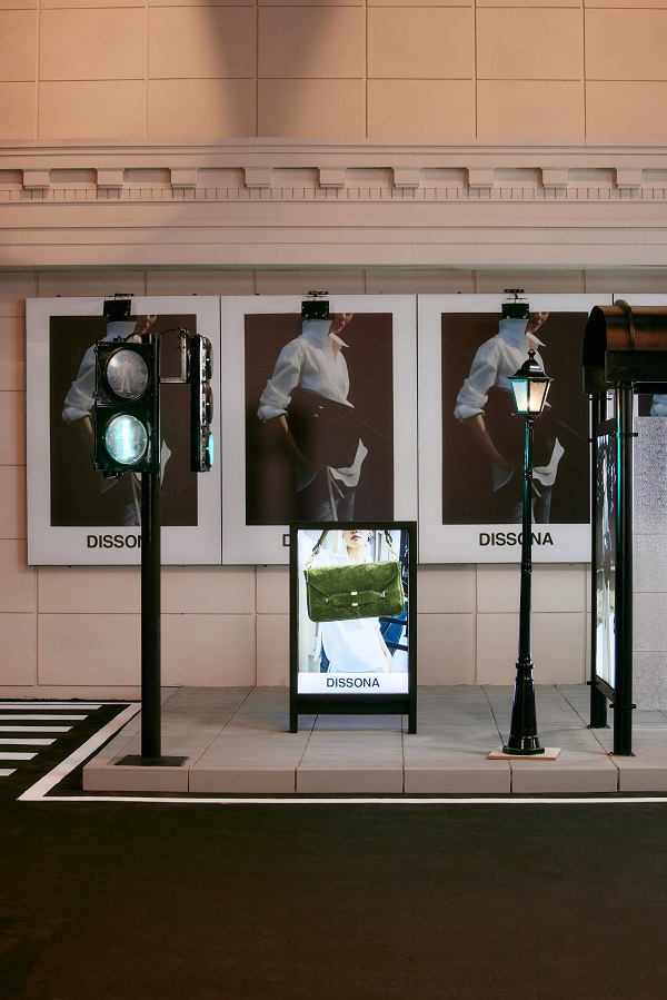 本次大秀聚焦都市中的真实映像,打破“秀场即舞台”的界限,以城市街区为灵感蓝本,实景还原咖啡馆、候车亭与城市街角等日常空间。8位模特以自在步调穿梭街头,演绎DISSONA「信函系列」「幸运锦囊系列」与「闲趣·折纸系列」等多款核心袋型;以通勤、出行、聚会等日常生活轨迹,组成一幅属于都市女性的真实画像。