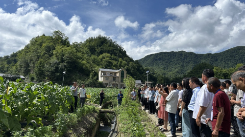 图为参训烟农赴十堰市兴山县野人谷镇参观学习烟田管理