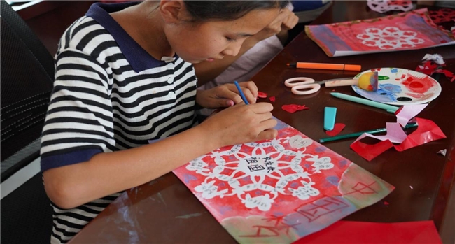 这份带着温度的感动,化作了实践队将美育种子播撒在边疆大地的坚定决心 。团队围绕“铸牢中华民族共同体意识”这一核心,精心设计了“纸板乐器、布艺拼贴、盘子画、传统剪纸”四堂体验课 。他们将课程浓缩为一句响亮的主题——“用双手剪贴中国梦,用和声奏响一家亲”,旨在让孩子们在动手创作的乐趣中,潜移默化地种下民族团结的种子 。