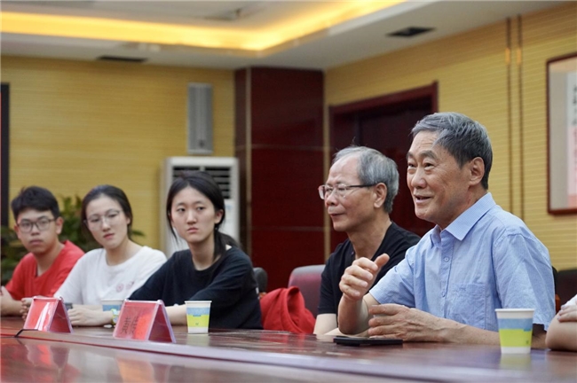 (图4 实践队员们正在聆听银龄教授讲述教学经历)