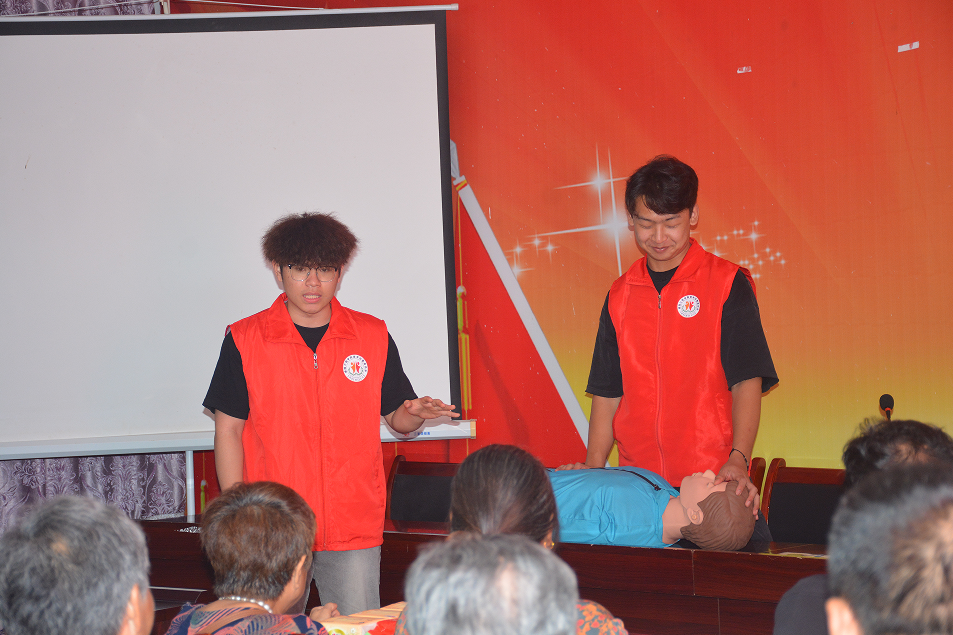 在讲座的后半部分,德擎火盾志愿队的队员们还为村民们带来了实用的心肺复苏和海姆利克急救法培训。队员们通过生动的讲解和现场演示,让村民们直观地了解了这些急救技能的重要性和操作方法。