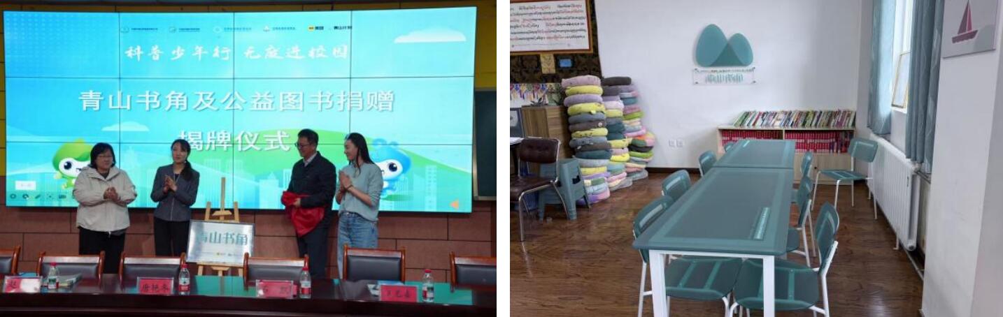活动上,主办方为“青山书角”揭牌,鼓励在校师生利用纸质书与融媒体结合的自主阅读空间,充分学习科学知识,以更加饱满的热情融入环保行列。中华环境保护基金会携手心的光明公益,针对高原高寒气候与师生实际需求,量身定制,捐赠图书、文具、衣物等公益物资。