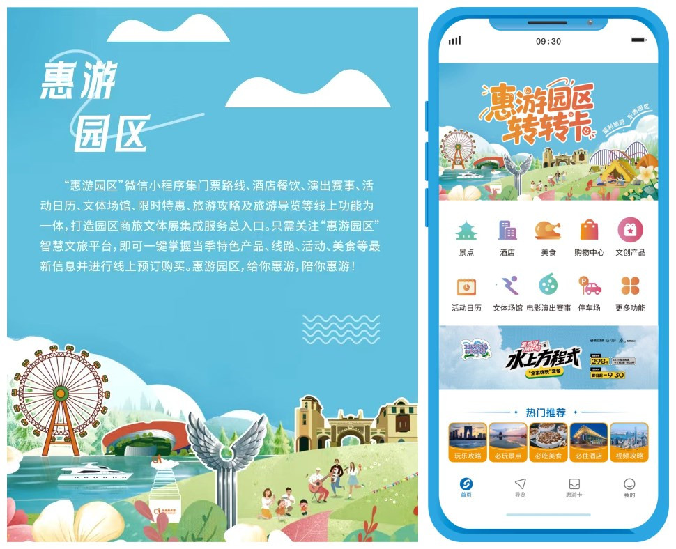 “惠游园区”作为园区智慧文旅一站式服务平台,整合了门票路线、酒店餐饮、演出赛事、活动日历、文体场馆、文创特产、限时特惠、攻略导览等多元服务,扫码即可一键掌握当季特色产品、线路、活动、美食等最新信息,实现便捷购买,是园区打造“全域智慧文旅”的生动实践。