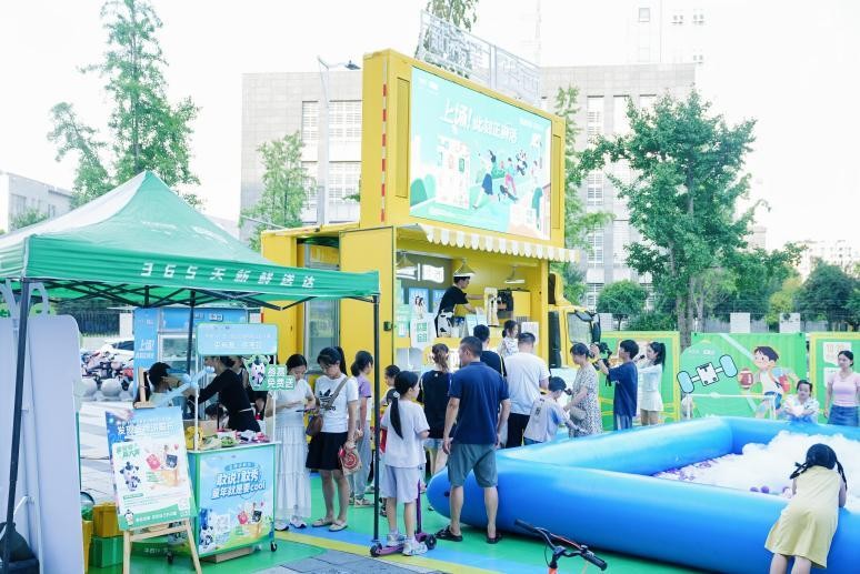 成都,这座兼具快节奏与慢生活的城市,成为品牌“鲜活叙事”的理想背景。活动以"黑小优"IP为核心,搭配定制「鲜活"金"彩巡游车」,穿梭于运动场馆、商圈与地标之间,串联起成都的运动基因与城市生活方式。巡游车最终从赛场驶入宽窄巷子,实现从运动场景到城市文化场景的自然过渡,打造"鲜活慢闪"打卡点,呼应成都人的双面生活哲学。品牌通过在地化场景打造,成功将24小时鲜牛乳与成都本地文化符号深度绑定,增强情感认同感。
