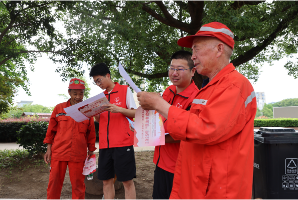 在新城广场旁,“香溢”志愿者林圣超、孙宇焘一边给环卫工人递上矿泉水,一边递上图文并茂的《民法典宣传折页》。环卫工人常年在户外作业,日常购买卷烟多依赖街边小店或流动摊贩,容易买到假烟却不知如何维权。