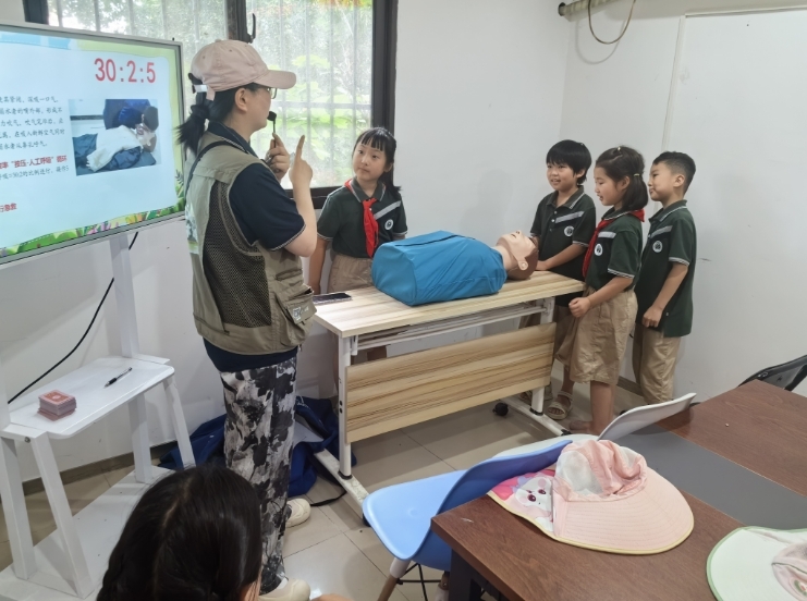 “同伴落水怎么办?”在防溺水课堂上,专业的指导让孩子学到了关键的自救知识。与此同时,街道新时代文明实践所、站及社区开办的“五彩假日”托管班,为孩子们撑起一片安全、快乐、充实的天空。1小时安全课+N项特色活动”的模式,已服务儿童650余人次,既有效解决了双职工家庭的“看护之忧”,更在孩子们心中播撒了知识与梦想的种子,让暑期成为快乐成长的加油站。