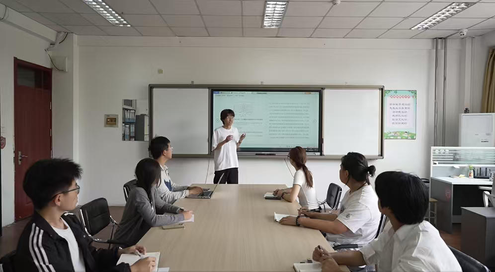 青岛恒星科技学院“盐碱变沃土”项目负责人李硕带领项目组成员研讨