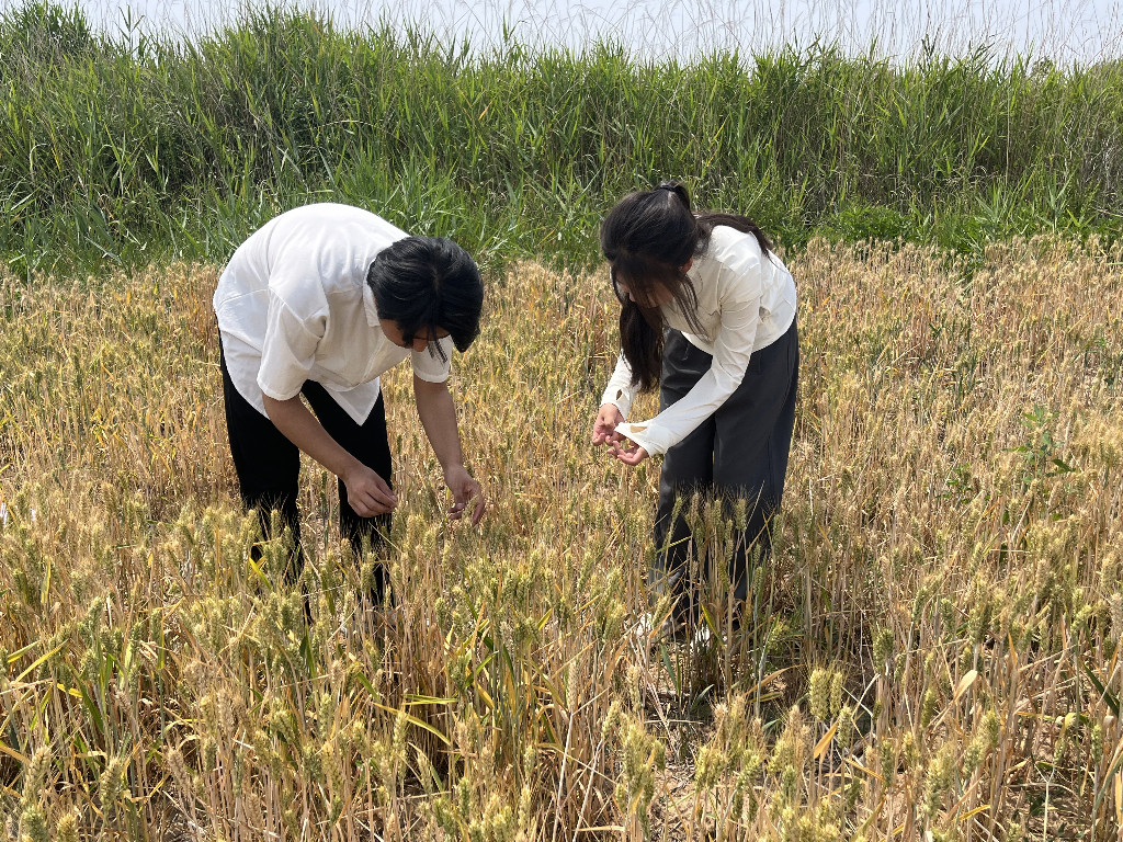 团队成员对施用过养分缓释的有机无机复合型肥料的小麦进行样品采集