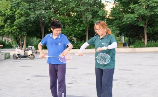 团队成员为孩子指导示范羽毛球反手发球姿势 张家乐 供图