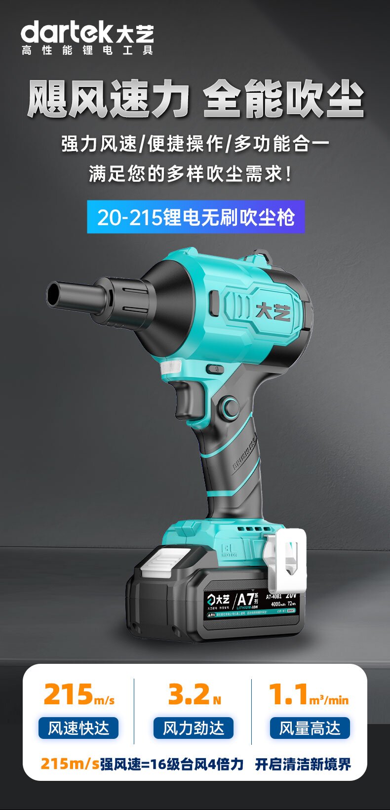 紧跟市场趋势与用户需求,大艺科技正式推出专业级新品——20-215锂电无刷吹尘枪。该产品集高效动力、多场景应用与智能操作于一体,致力于为用户提供更便捷、更强劲、更多用途的解决方案。