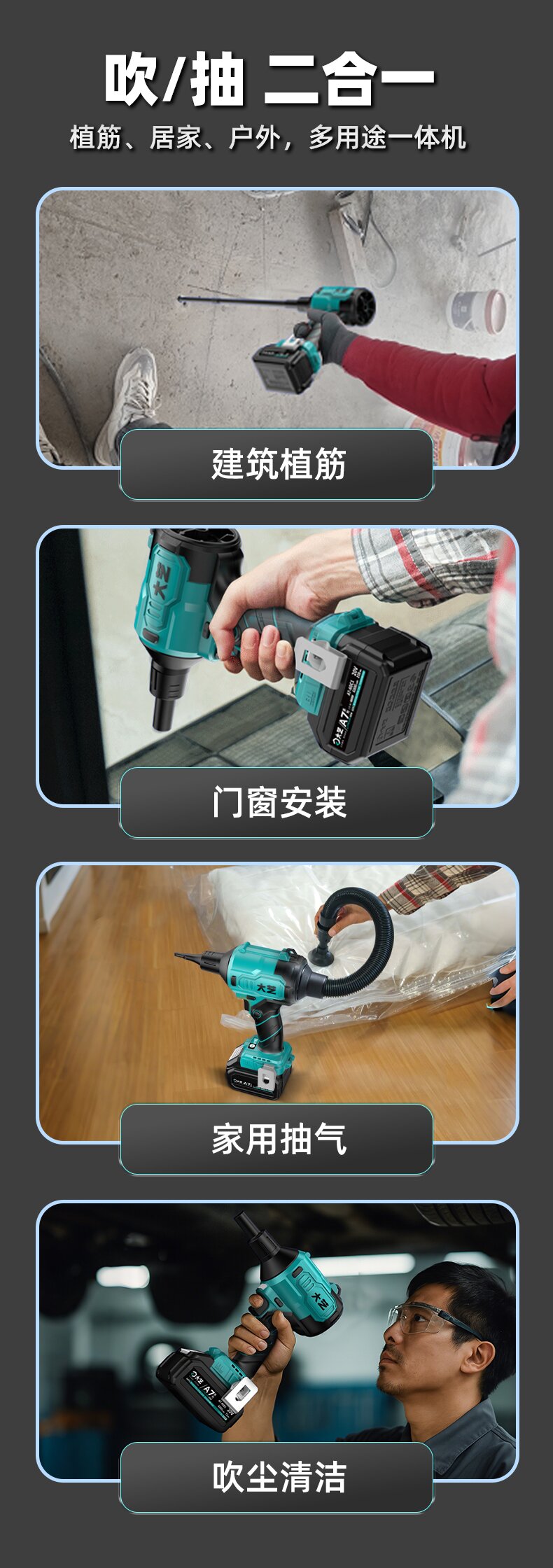 大艺科技始终以用户需求为导向,持续推进锂电工具的技术创新与产品升级。20-215吹尘枪广泛适用于门窗安装、设备检修、定制家装、建筑植筋、汽车维修及家用抽气等多种场景。采用A7平台20V电池包,不仅续航持久、节能高效,还具备过流、过压、过温及充放电多重保护,全面保障使用的安全性。
