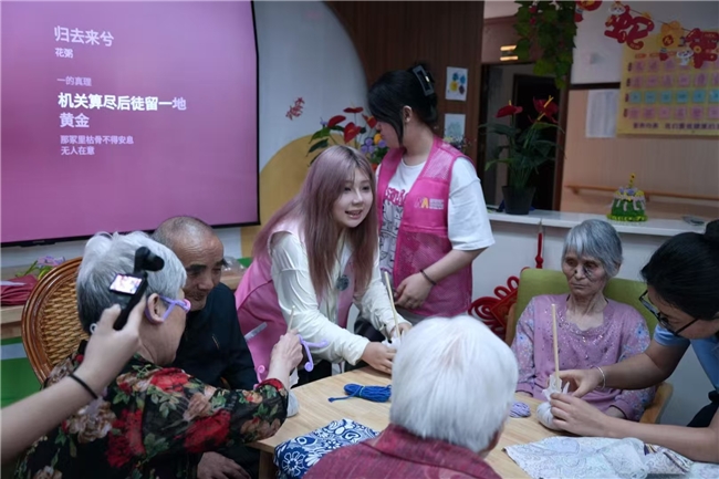 除了手工互动,团队还准备了简易的艾灸体验。成员们提前学习了基础艾灸知识,在医护人员的指导下,为有需求的老人温灸穴位,一边操作一边拉家常。“奶奶,您平时晚上睡得好吗?”“爷爷,孩子们最近来看您了吗?”聊天中,大家渐渐摸清了老人们的生活状态——不少老人因子女在外务工,一年到头难得见上几面,日常除了看病、吃饭,大多时候就是坐在窗边发呆,“孤独”成了他们生活里难以言说的底色。