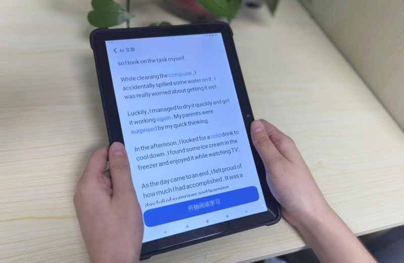 在孩子们的眼里,「尚学伴」的“情景交互” 少了些枯燥的抄写,多了些有趣的互动:有人喜欢 “闯关”—— 通过 “鸭巢归位” 匹配单词释义,解锁 “星空冠冕” 勋章时会兴奋地和同伴击掌;有人觉得 “自己编故事” 很新鲜 —— 选几个刚学的单词,AI会自动生成带情节的短文,比如学了 “computer、surprise、again”,就会出现 “我不小心把水洒在电脑上,清洁干净后父母感觉很惊喜” 的段落,孩子读着自己 “参与创作” 的内容格外起劲儿,回答错误还会被实时纠正。这些设计的背后,是「芯优才」对 “学习本质” 的理解:技术不应是 “知识灌输工具”,而应成为 “激发兴趣的桥梁”。