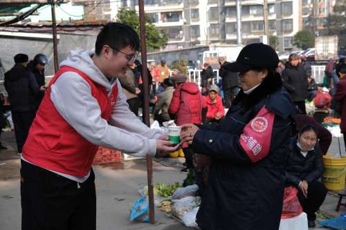 此外,志愿者们还组建“流动送温暖小分队”,走上街头,为正在作业的户外劳动者送上暖宝宝、艾草贴等暖冬物资。一杯杯热水、一个个暖宝宝,不仅驱散了冬日的寒冷,更让户外劳动者感受到了深切关怀。