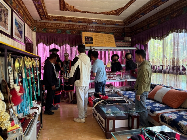 (图三:调研团队在珞巴服饰传承人工作室中进行调研学习)