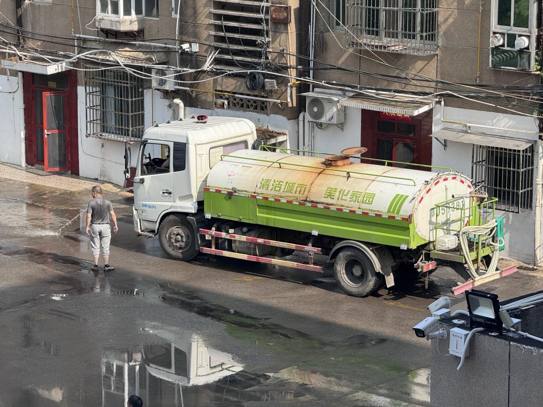 (图为清理院内淤泥、消杀防疫工作 张攀摄)