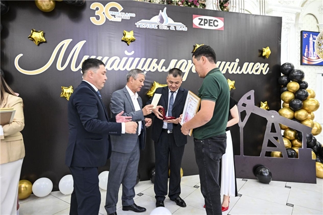 庆典伊始,现场播放了坚戈油田成立30周年专题片。随后,集团高级副总裁兼中亚能源公司总经理陈庆军宣读了来自集团总部的贺信,并发表了热情洋溢的致辞,表示:中曼石油收购坚戈油田后,通过钻探80口新井、建设集输管线、升级并投产中央处理设施(CPF)、新建3号和4号计量转油站、铺设原油外输管道等举措,显著提升了油田开发能力,稳定了当地就业,切实履行了社会责任。这一切都离不开生产一线和机关全体员工的辛勤付出,相比附近已开发60多年的乌津和热德拜油田,刚刚迎来30周年的坚戈油田显得更加年轻,充满潜力与活力,祝愿坚戈油田未来发展得更快更好。