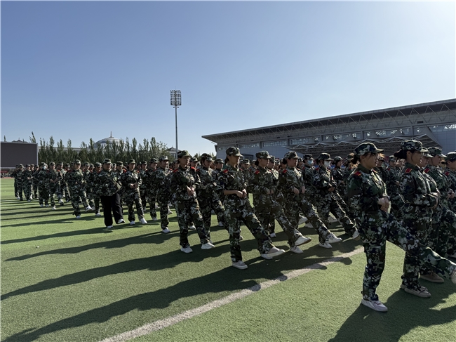 近日,音乐学院2025级新生军训正火热进行。训练场上,往日琴房里的艺术骄子化身英姿飒爽的迷彩新兵,以昂扬斗志投入这场意志与体魄的淬炼。