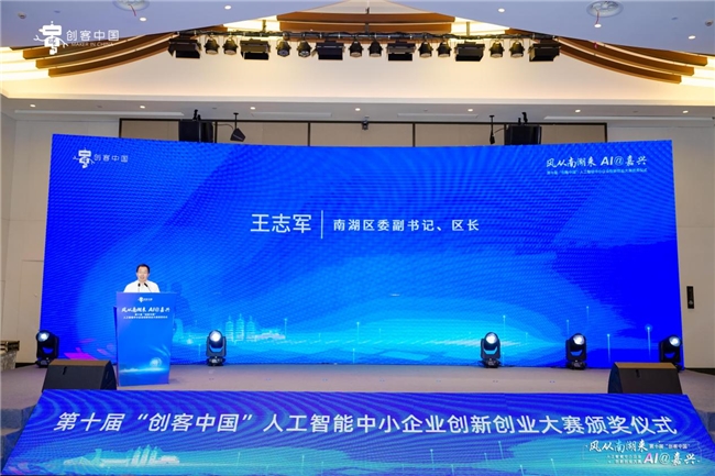 颁奖仪式上,南湖区委副书记、区长王志军在致辞中表示,当下的南湖,GDP超千亿,规上工业总产值超1200亿,正抢抓人工智能产业赛道。南湖坐拥清华柔电院、南湖实验室在内的三家国家重点实验室,有着百亿政府产业基金、全国最大的万亿资本基金小镇,可为人工智能企业提供研发支撑与金融支持。“我们正全力打造人工智能‘长三角零部件和整机制造基地’,集聚了九识智能等近50家人工智能企业,这正是创新链、产业链、资金链、人才链‘四链’深度融合的体现。”