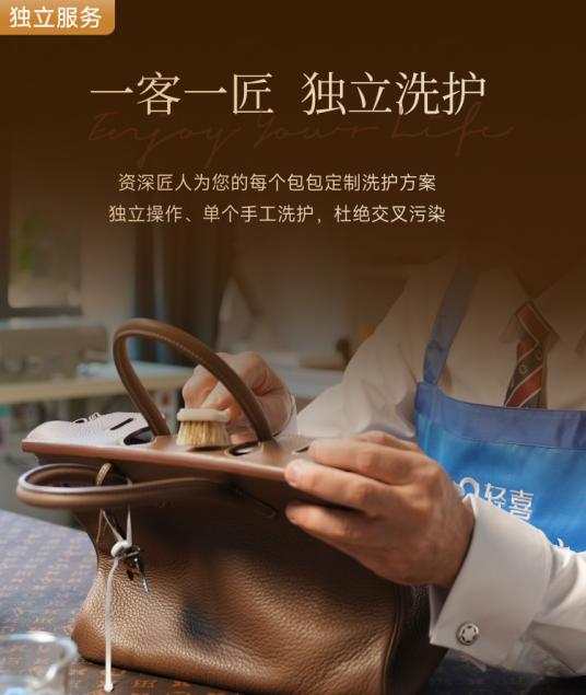 聚焦奢侈品洗护难题,轻喜到家凭借深耕家庭服务领域的多年专业积淀,推出了一套专业、个性化的奢侈品洗护服务方案,并以“大师手洗、全程可视、无忧售后”三大核心优势重新定义了奢侈品洗护新标准。