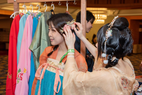 在这里,年轻人不但可以通过视频,从音乐、美食、戏曲、民俗等多个方面生动了解中国文化。更具互动性的是,展区设置了汉服体验环节,不少外国年轻人主动换上汉服拍照打卡,直言“这种将传统与潮流结合的方式很有趣,让我对中国文化产生了更强的好奇,想去实地感受更多”。