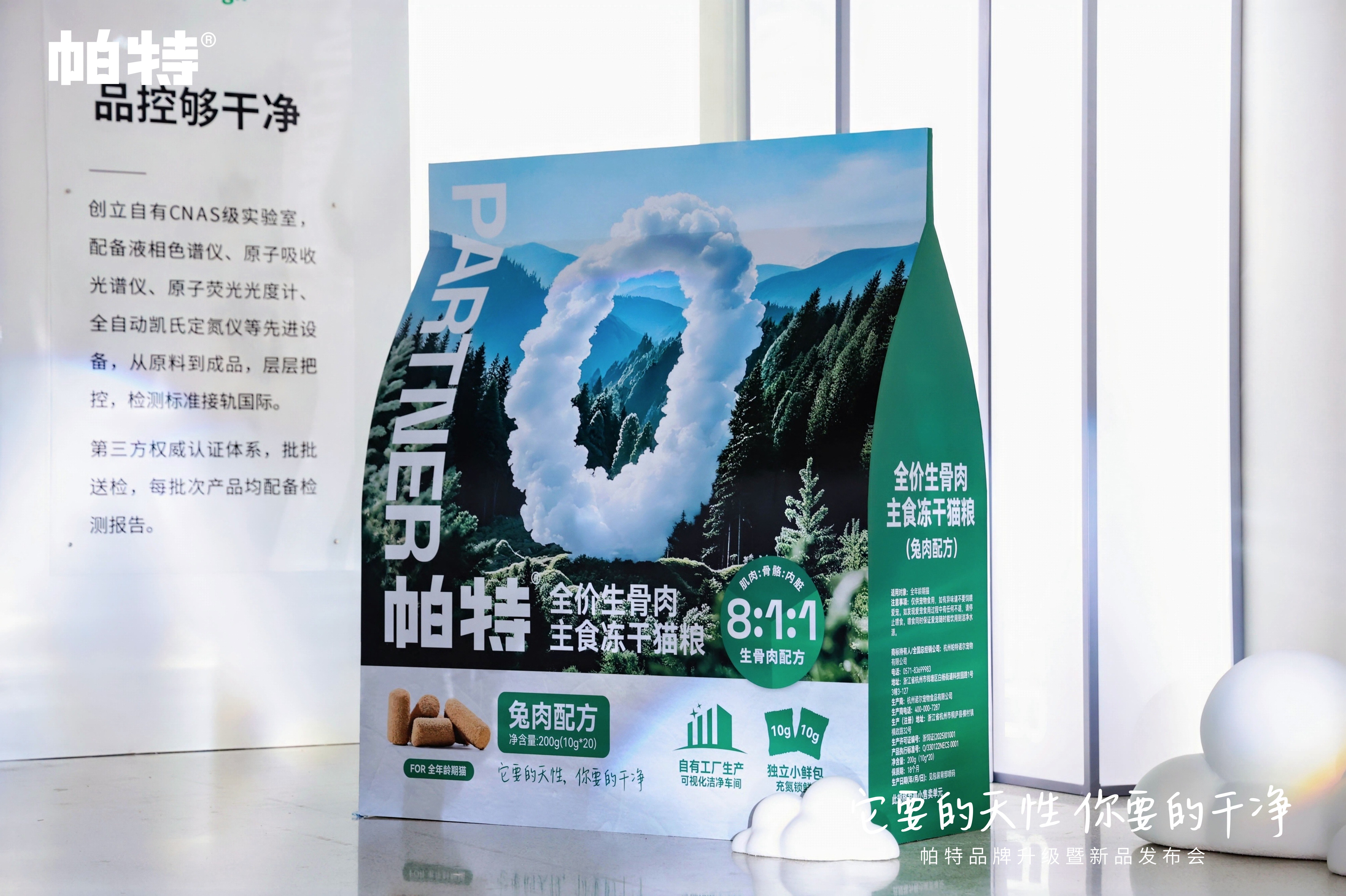 在自然界中,猫与犬类作为天生的猎食者,其饮食结构需涵盖肌肉、骨骼、内脏等完整猎物的营养。帕特从这一理念出发,早在数年前便提出“8:1:1生骨肉黄金配比”,模拟猫犬在野生环境下的摄食习惯。此次,品牌将“天性”进一步系统化,延伸出更符合现代家庭喂养场景的产品方案。