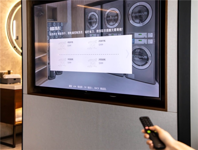 更深层的“情感智能”体现在电视AI虚拟管家的拟人化交互上。它不再是一个机械的语音应答机器,而是一个有形象、有语气、有关怀的虚拟伙伴。它能够以更自然的方式与住客交流,提供本地美食推荐、出行天气提醒等贴心服务,将冰冷的科技服务转化为有温度的情感连接。在细节上,也充满了对“人”的尊重,例如在电视投屏方面,住客可以通过电视专属的隐私投屏功能,防止手机内容泄露;在洗衣服务方面,住客可以通过电视查看洗衣房空闲状态,无需在洗衣房门口排队等待,在衣物清洗快结束时还会在电视屏幕上弹出相关提示,以免出现忘拿、错拿的情况。不仅如此,TCL的智慧酒店解决方案还可以为酒店“降本增效”进行技术赋能,TCL酒店电视可以与酒店的送物机器人进行连接,在住客通过电视提出送物服务时,电视会及时向送物机器人下达指令,为住客送上所需物品;在洗衣房管理方面,酒店相关人员可以远程线上监控洗衣房设备的运行状态,发现故障设备及时安排专业人员处理,这一定程度上降低了酒店的用人成本,提升了服务效率。TCL智慧酒店解决方案不仅为住客与酒店带来了便捷与舒适,更让住客感受到了科技背后的情感关怀。而这种从“工具属性”到“情感价值”的升级,正在悄然推动整个酒店业重新审视并定义“人—情感—科技”三者之间全新的共生关系。